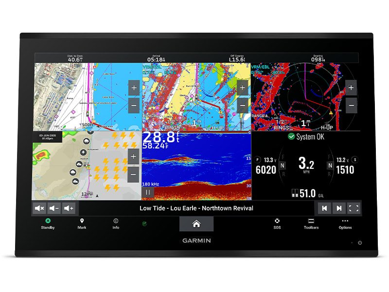 The 4K resolution IPS sunlight-readable touchscreen display is available in the industry’s largest integrated chartplotter size. Edge-to-edge design provides a seamless and luxurious modern look.
