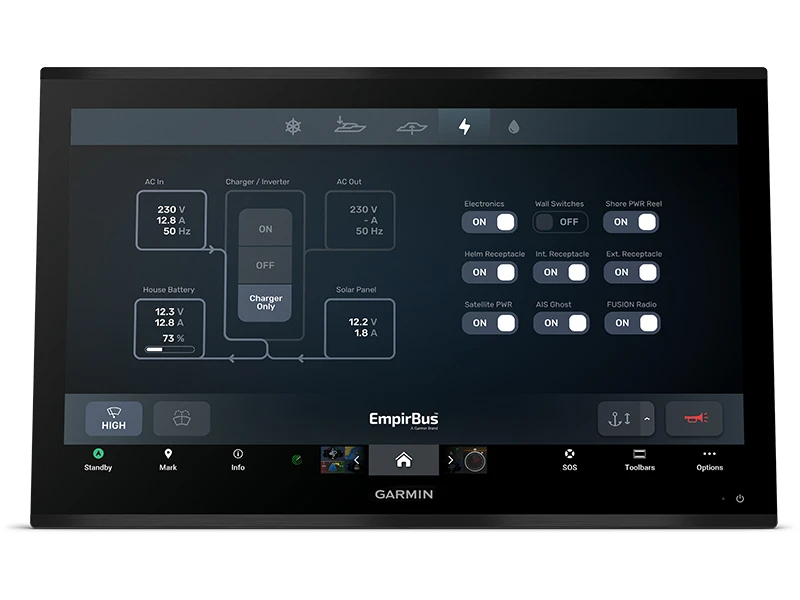 Take command through digital system integrations to monitor, automate and control your vessel. The chartplotter uses the NMEA 2000® and NMEA 0183 networks to connect to your compatible accessories.
