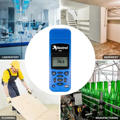 The Kestrel® 7000 Environmental Meter is the professional’s choice for accurate monitoring of relative humidity and temperature. Built for durability and efficiency, this tool offers the highest performance with the convenience professionals need on the job. Invest in the Kestrel® 7000 and equip yourself with the best in environmental monitoring.