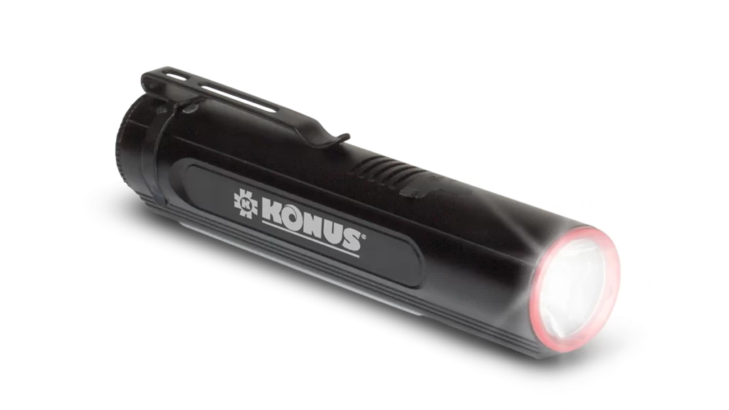 The KonusLight-2K Rechargeable Flashlight/Lantern from Konus combines power and portability. Less than 5″ long, the light delivers 1000 lumens, with a 2000-lumen turbo mode for up to 40 seconds at the push of a button. In addition, the light is equipped with a 500-lumen side lantern for area illumination. Fully made of metal, it includes a magnetic base for hands-free operation and a clip to keep it secured in your pocket.