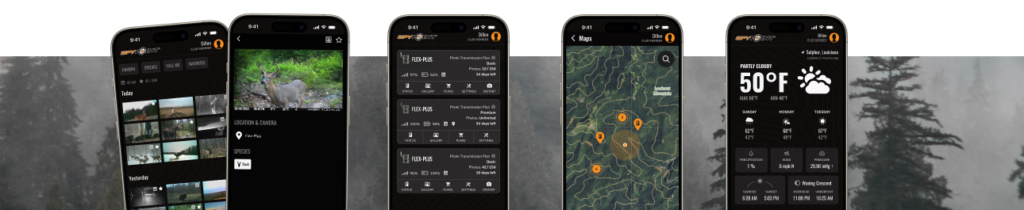 Free to download and easy to use, the SPYPOINT App is a cellular trail camera management and scouting tool that will save you time, grow your knowledge base, and increase your chances for a successful hunt. Use the app to view and sort photos and videos sent from your cellular trail cameras, manage camera settings and transmission plans, mark key locations like stand sites, check weather conditions, and more!