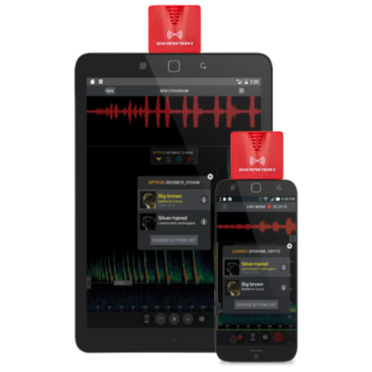 Discover—and demystify—a world unheard. Bats produce sounds outside the range of human hearing. Echo Meter Touch 2 uses sophisticated hardware and software to make bat vocalizations audible. Patented Real-Time Expansion (RTE) technology makes it possible to hear bats as they fly by